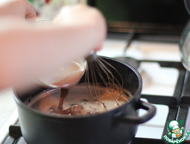 Если у вас есть такой коктейль и Parmalat, то вам потребуется всего 3 минуты. Если нет, то возьмите пол литра молока, 50 г. шоколада и 2,5 ст.л. сахара, разогрейте, а дальше по инструкции.