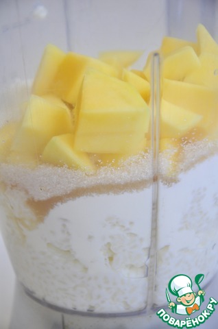 Манго очистить от кожуры, срезать с косточки мякоть, нарезать. Несколько ломтиков оставить для украшения.
