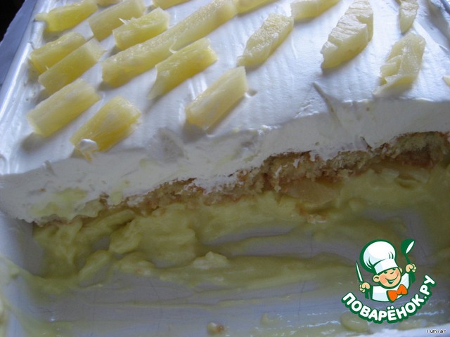 | ... легкий, неприторный десерт (sobremesa) из ананасового пудинга и сладкой выпечки со взбитыми сливками. |