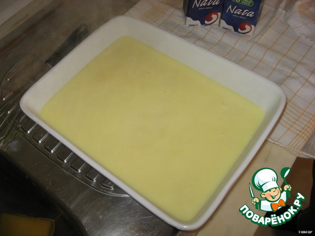 Готовится ананасовый пудинг из 2 пакетиков, как указано на упаковке пудинга. Но, на всякий случай, распишу, как готовила я.