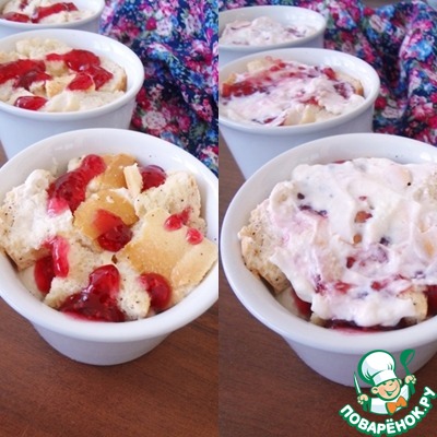 Сверху распределите по 1 ст. л. малинового джема и творожного сыра на каждую порцию. Выложите остальной хлеб.