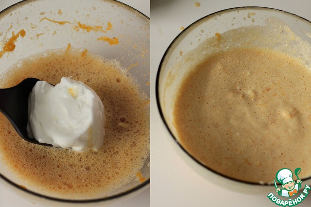 Взбиваем сливки до устойчивых пиков, вводим в тыкву вместе со специями. Аккуратно размешиваем, чтобы суфле не набрало воздуха.