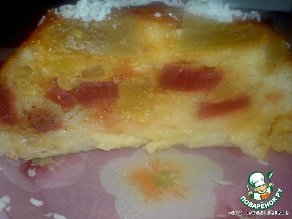 | Сегодня первый день зимы, а по погоде совсем не скажешь, даже снега нет. Так пусть будет хотя бы символически, в виде вкуснейшего творожного пудинга с клубникой и ананасами :) |