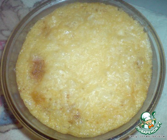 Выливаем смесь в форму, смазанную сливочным маслом. Можно наливать почти до краев, пудинг не сильно поднимается. У меня маленькая форма, так что всей массы хватает почти на 2 таких пудинга.
