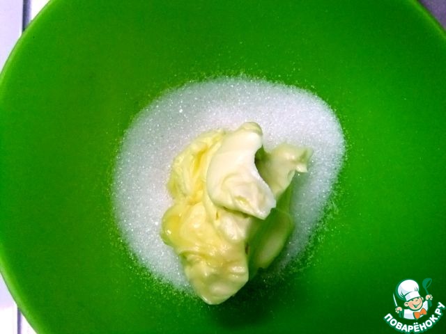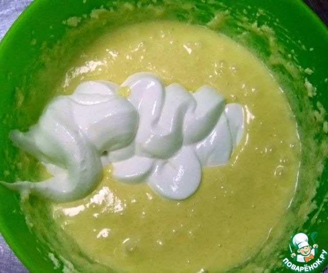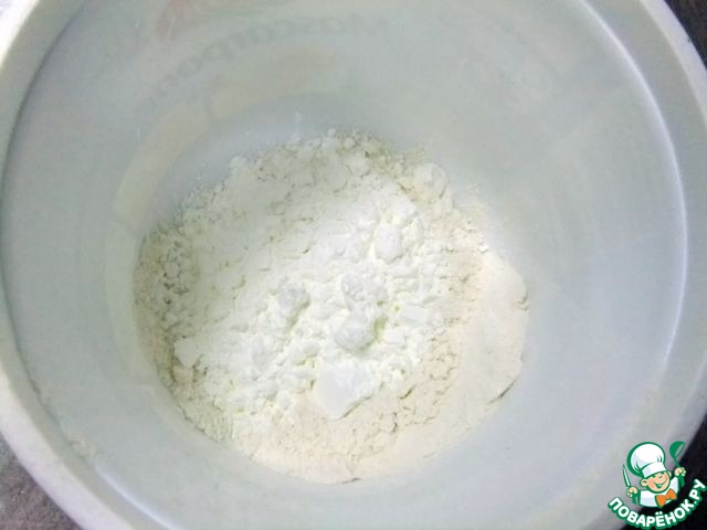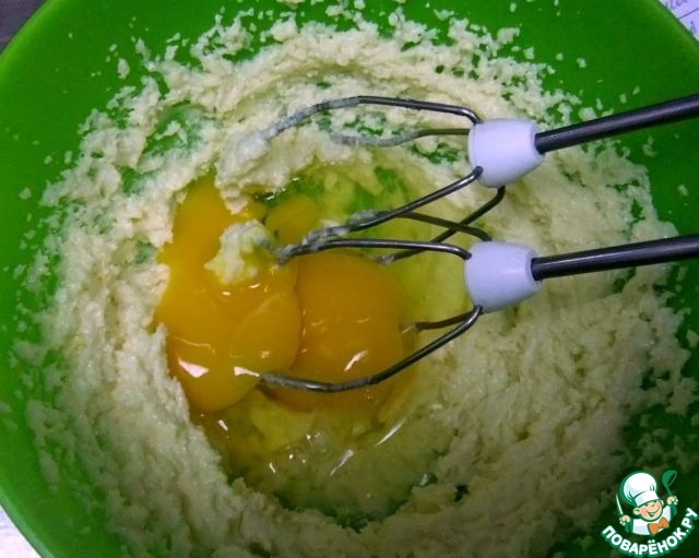Крахмал смешать с мукой, соединить со взбитой массой и замесить очень мягкое тесто.