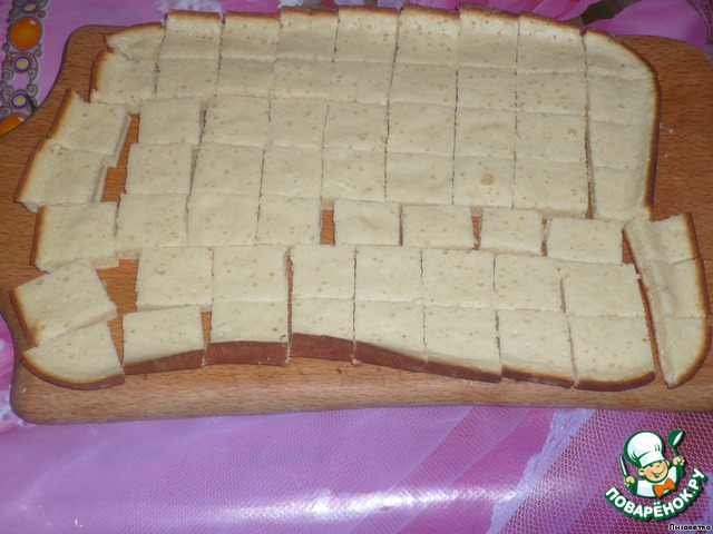 Вынуть из формы, немного остудить, нарезать кубиками.