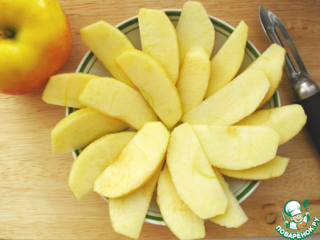 5. Яблоки очистить и нарезать тонкими дольками.
