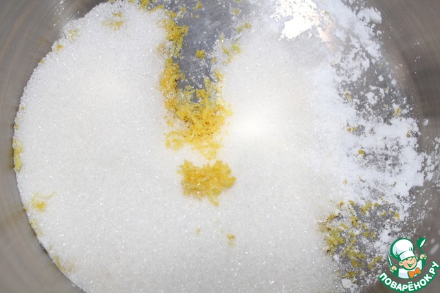 В глубокой кастрюле с толстым дном смешиванием сахар, крахмал, лимонную цедру и соль. Вливаем немного молока, примерно около 100 мл., перемешиваем.