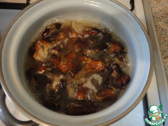 В небольшой кастрюльке доводим до кипения 1 стакан воды, финики варим до мягкости (примерно 3-5 минут). Снимаем с огня, накрываем крышкой.
