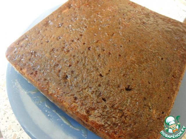 Затем переворачиваем его. Разрезаем на 9 частей. И перед подачей поливать каждый кусочек теплым (оставшимся) соусом.