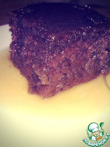 И выливаем половину нашего теплого соуса на теплый пудинг. Даем ему пропитаться. Примерно минут 5.