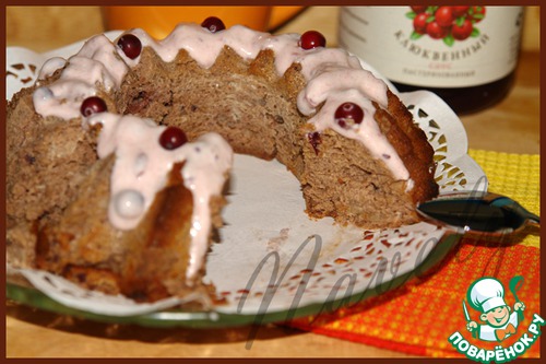 Польем пудинг сверху соусом, при желании можно украсить клюквой.