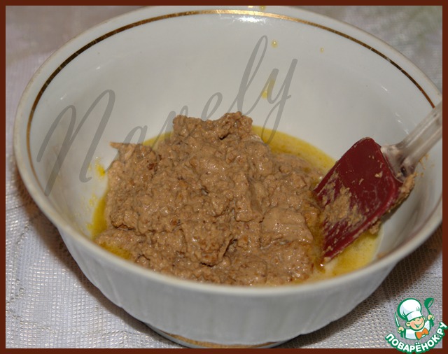 В растертые желтки добавляем остывшую желудевую кашу и размяченное сливочное масло, перемешиваем.