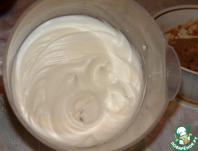 И в два приема вводим в наше тесто, аккуратно вмешивая лопаточкой сверху вниз.