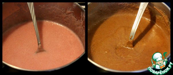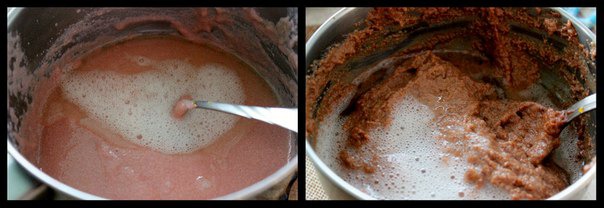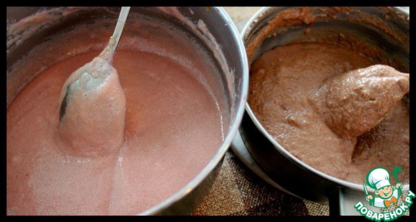Один стакан смешиваем с одной ст. л. сахара и какао. Второй стакан смешиваем с оставшимся сахаром.