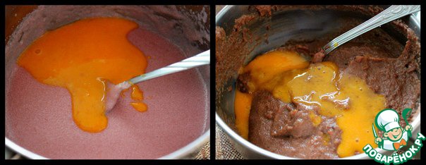 Выливаем пополам яичную смесь в каши. Перемешиваем.