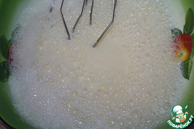 Яйца взбить с оставшимся сахором