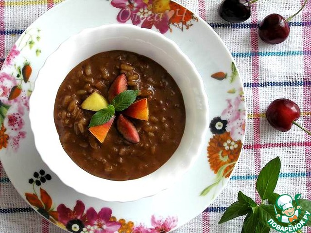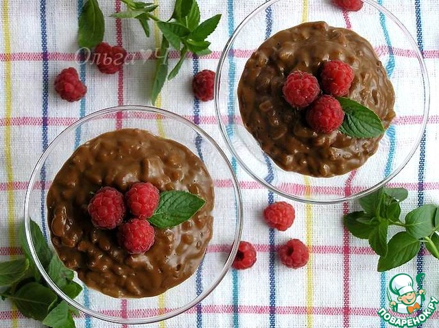 Получившийся шоколадно-рисовый пудинг украсить ягодами, мятой или кусочками фруктов и подавать к полднику!