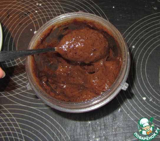 Делаем "подливку": отваренный чернослив смешиваем с бананом и пропускаем через мясорубку или измельчаем блендером.