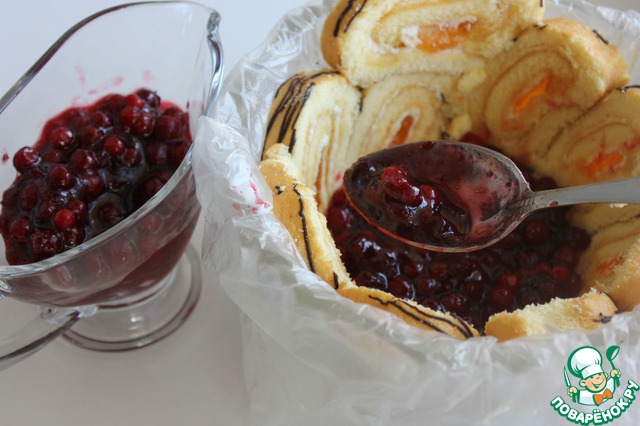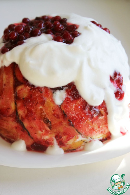 Теперь остается только украсить сверху взбитыми сливками и ягодами брусники. Приятного аппетита!