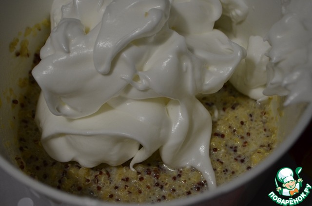 Перемешивать не спеша лопаткой так, чтобы масса не опала и сохранила свою воздушность.