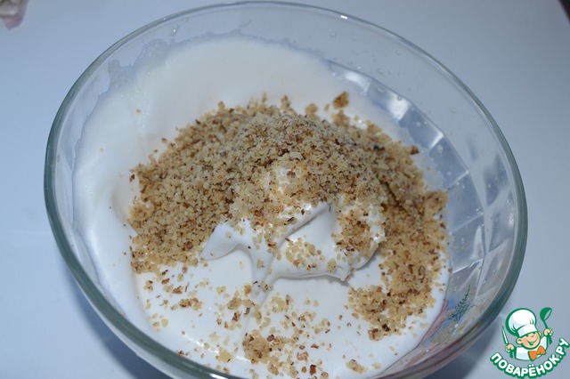Приступаем к «сборке блюда». На дно раскрошим несколько меренг