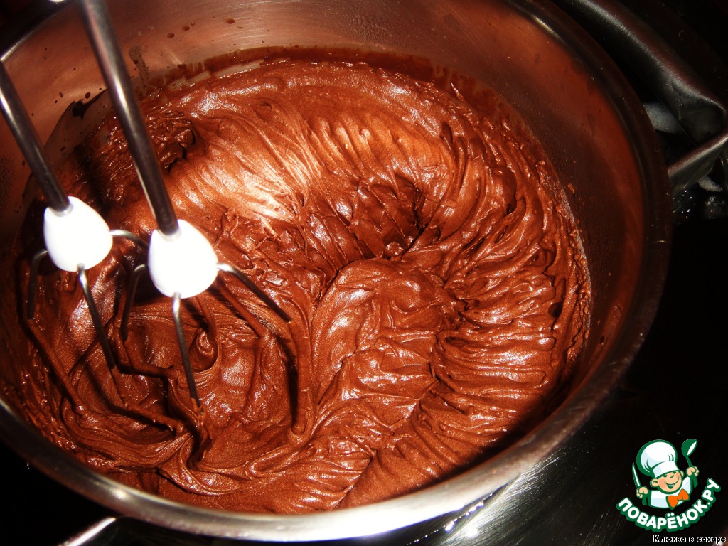 И начинаем взбивать шоколадную массу миксером, постепенно увеличивая скорость. Первое время масса будет оставаться жидкой, кроме пузыриков воздуха никаких видимых изменений вы не заметите.