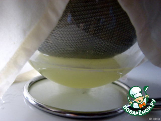 Нужен был дуршлаг и тонкое кухонное полотенце. Я взяла чайник с ситом. Тонкая салфетка тоже нашлась. Думаю, чем тоньше, тем лучше!