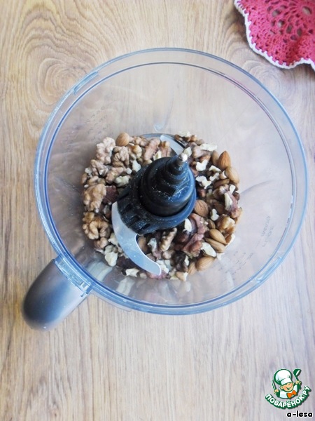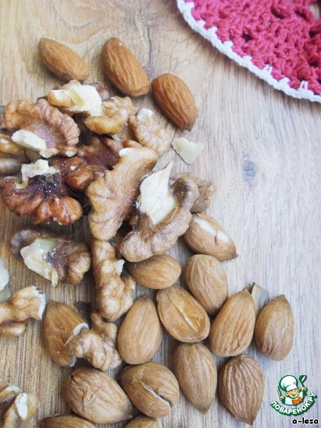 У меня смесь орехов: грецкие, миндаль и ядра абрикосовой косточки (их совсем немного, а то могут горчить).