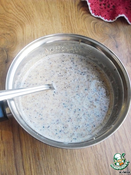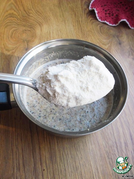 Добавить муку, тщательно перемешать до однородности, не допускать комочков,