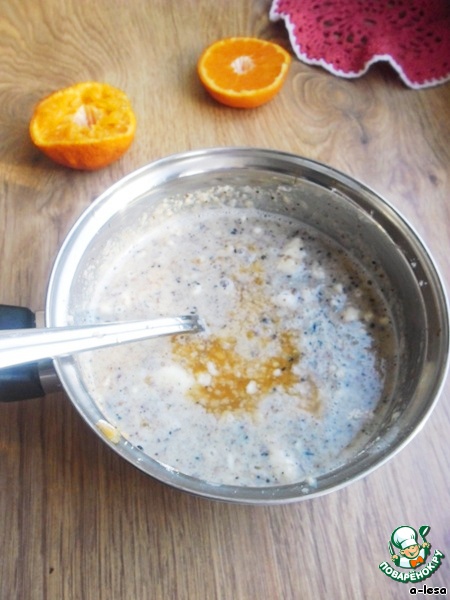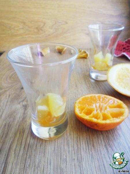 Выдавить сок цитрусовых, в даном случае мандарин, но это уже на ваш вкус (лимон, апельсин)