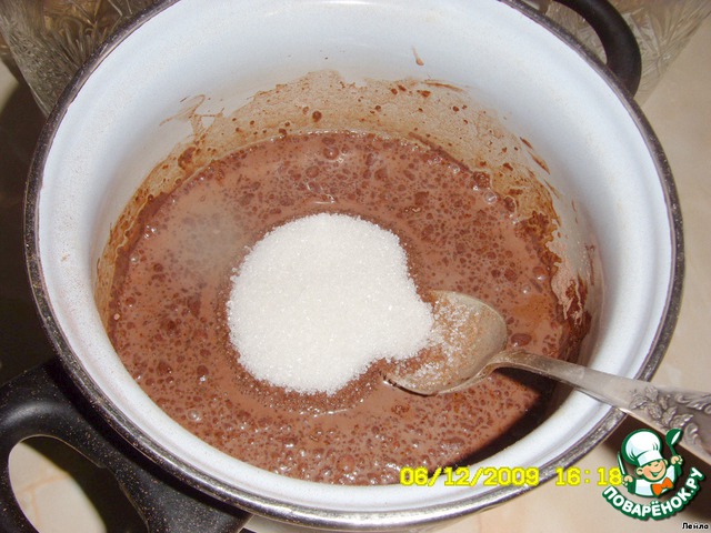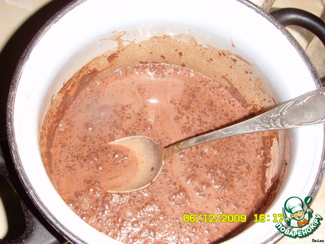 Слегка подогреть молоко, всыпать просеянную муку и какао (тоже обязательно просеять).