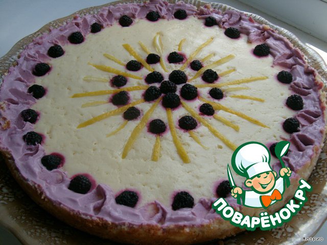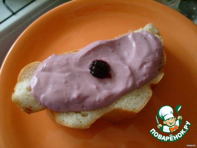 Взбиваю творог в блендере с сахаром и ягодами, в данном случае - горсть ежевики, использую по случаю клубнику, черную смородину, малину, очень спелые груши, лимоны(мякоть без косточек).Если творог суховат, добавляю жирные сливки ( к домашнему творогу это не относится).При желании можно сделать шоколадный крем, добавив в массу какао или ломтики пористого шоколада. ВСЕ!!!Вкуснятина готова, ее надо лишь немного охладить и можно использовать по усмотрению - подать порционно, намазать на тосты, гренки или просто ломтики хрустящего батона,подать с целыми ягодами или фруктами, украсить торт (я по случаю из крема, оставшегося от завтрака, сделала бортики на торте).
