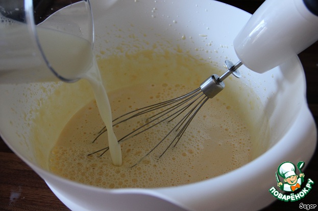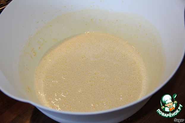 Яйца и желтки взбить с 200 г сахара, пока не побелеют.