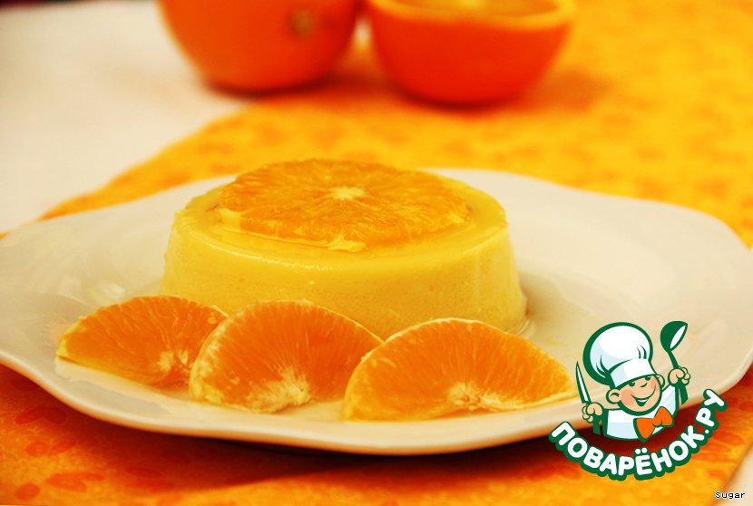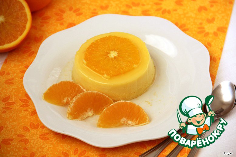 Готовый крем охладить и перевернуть на тарелку. Украсить нарезанным кружочком апельсина.