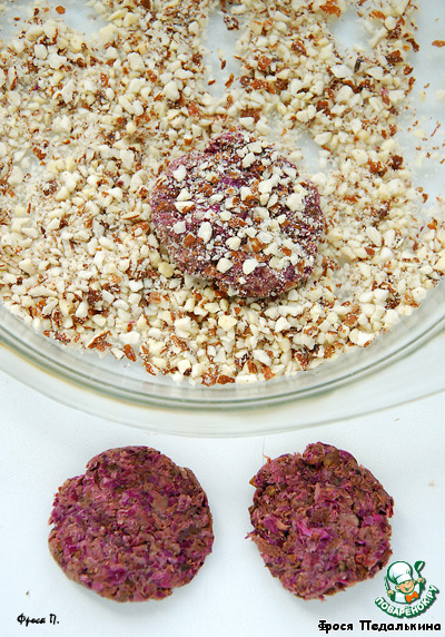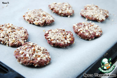 Дальше лепим лепешечки и обваливаем их в молотом миндале.