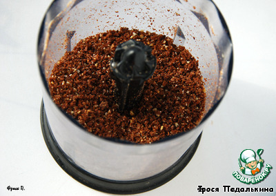 Измельчаем их опять блендером. Мука получается отнюдь не розовая, но очень ароматная! Немного похоже на кофе. :)