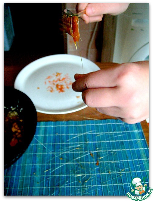 Окунаем в карамель вилку, поднимаем ее над тарелкой, дожидаемся падения первой капли. И вот в этот момент пальцами свободной руки подхватываем эту каплю (горячо, но терпимо!) и тянем, тянем ниточки!