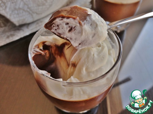 Выкладываем белый крем сверху на крем с кофе при помощи ложки или кондитерского мешка.