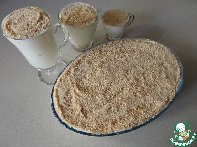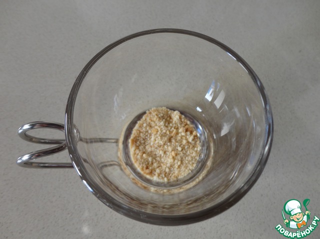 В чашечку (креманку, форму) насыпаем немного печенья.