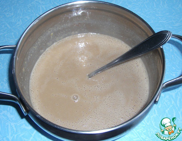 И соединить с желтками. Прогреть смесь до густоты сметаны на водяной бане, ввести набухший желатин и прогреть смесь до его растворения.