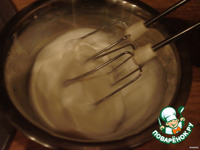 Взбиваем яичный белок до стойкой пены.