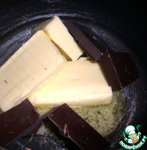 Шоколад с маслом топим на медленном огне.