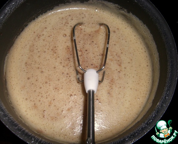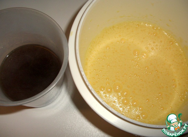 Тем временем варим крепкий кофе и взбиваем в густую пену 1 яйцо с 1 желтком и сахаром.
