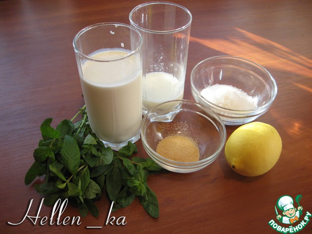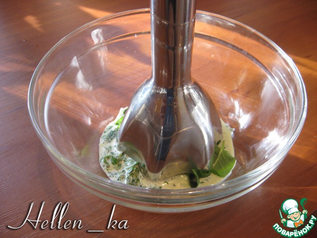 Мяту взбиваем с 1/2 настоявшихся сливок с помощью погружного блендера.