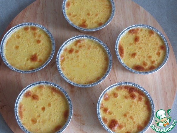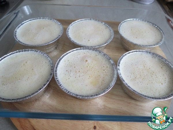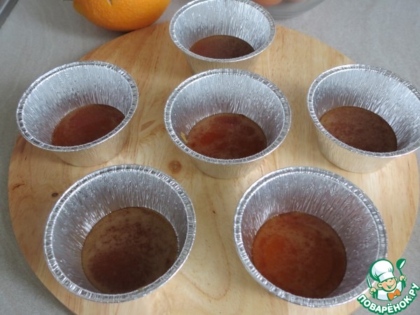 Разлить крем в формочки с карамелью.