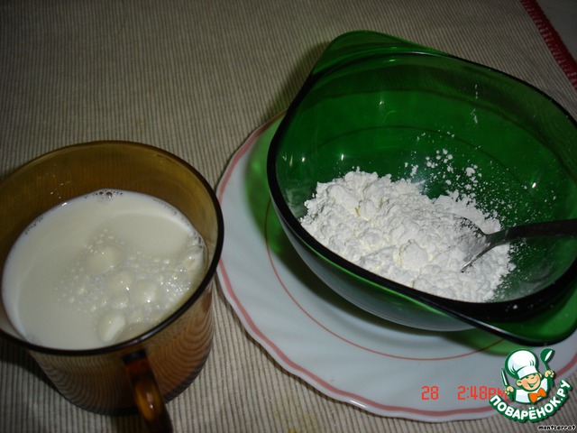 Соединяем взбитые яйца с разведенной мукой, размешиваем. Из молока удаляем корицу и цедру лимона, доводим до кипения и вливаем смесь непрерывно размешивая, доводим до загустения, не кипятим, чтобы не свернулись яйца.