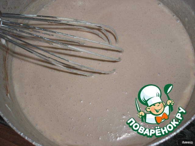 Затем аккуратно добавляем молочно-яичную смесь, продолжаем взбивать.