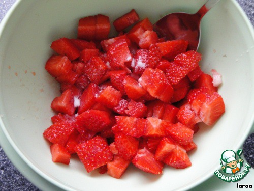 клубнику мелко нарезать и смешать с лимонным соком и 1 ст.л. сахара.