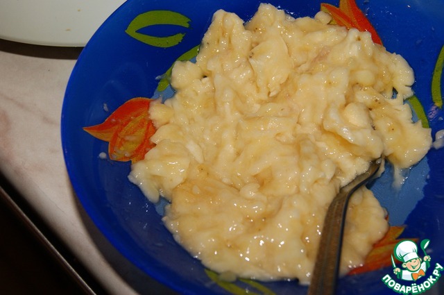 4-5 бананов порезать на кусочки, размять вилкой и добавить в масло. Взбивать миксером на протяжении 3-4 минут.